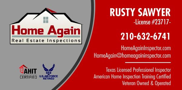San Antonio TX 78232. Texas Professional Inspector License 24069.